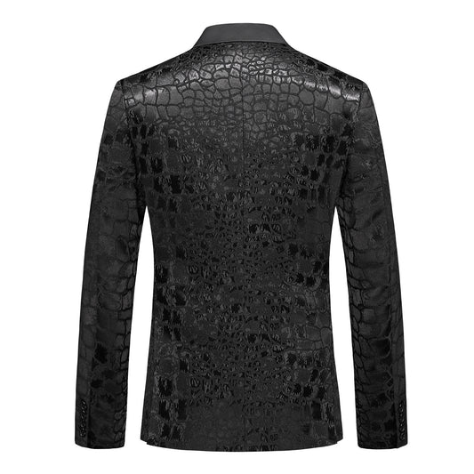 Men's Figure Jacquard Slim Fit Blazer | Single-Button Party & Banquet Jacket | Breathable Formal Wear for Nightclub & Events | 2609