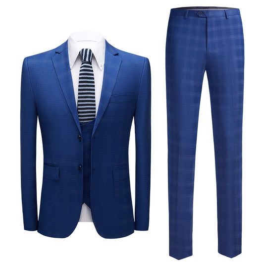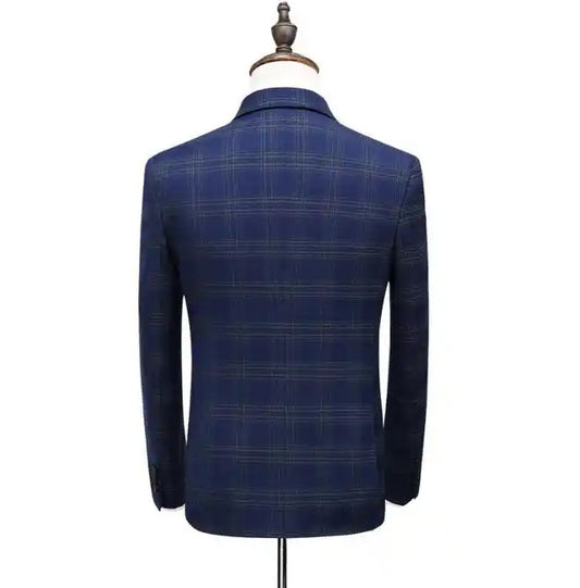 Men's 3 Pieces Slim Fit Suit Plaid Tuxedo Suit Dark Blue Business Wedding Dress Men Classic Formal Jacket Pants Vest | 9812-59