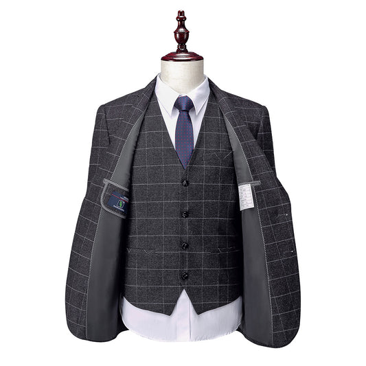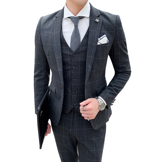 British Style Men’s 3 Piece Suit Business Casual Plaid Groom Wedding Dress Slim Suits | 6835