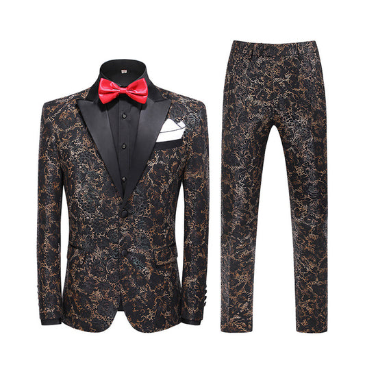 Men's Two-piece Slim Fit Pattern Business Suit Fitted Groomsmen Dress Elegant Tuxedo | C317-TZ107