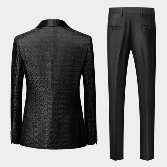 Men's Black Elegant Jacquard 3 Piece Suit Tuxedo - 1953