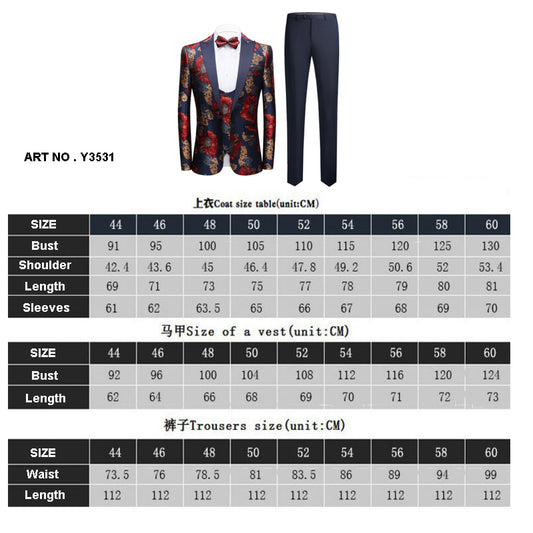 Men's 3-Piece Suit Notched Lapel Floral One Button Modern Tuxedo Sets | Y3531-1