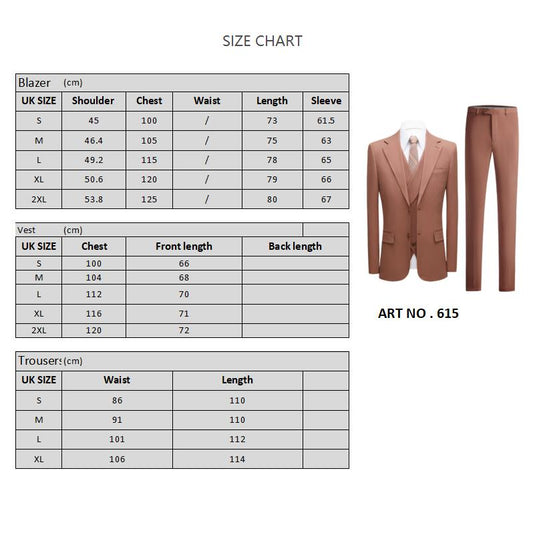 Men's 3 Pieces Suits Smart Fit Formal Business Wedding Tuxedo Blazer Vest & Trouser Set | Available in 11 Colours
