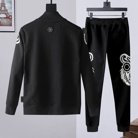 Men's Sports Casual Suits Zipper Stand Collar Printed Letters Trendy Tracksuits | 873