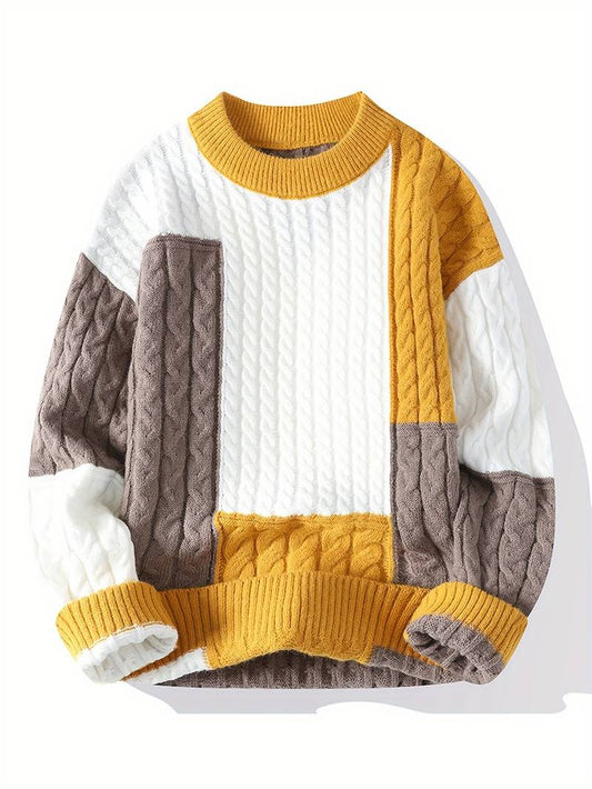 Men’s warm Knitted Pullover Sweater Ribbed Crew Neck Tops Long Sleeve Casual Wear Sweatshirt | 8373