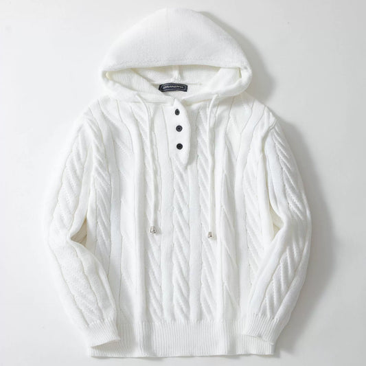 Men's Knitwear Twisted Drawstring Hooded Pullover Sweater 7-Needle Woolen Sweatshirt Jacket | SY0139