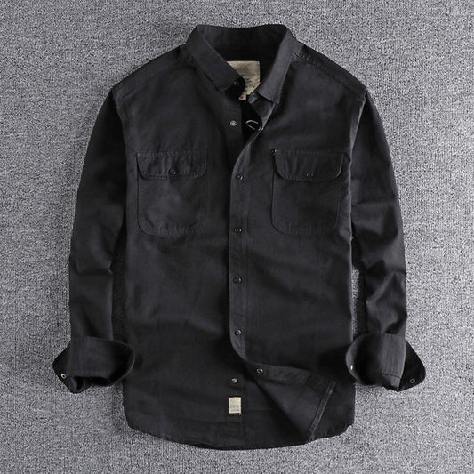Vintage Workwear Double Pocket Shirt Retro Casual Classic Shirt Top for Men | V38