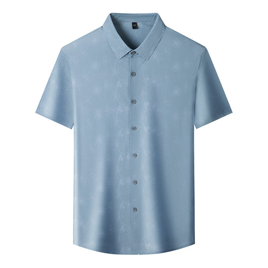 Men's Ice Silk Short Sleeve Shirt – Breathable Business Casual Stand Collar | A-D246