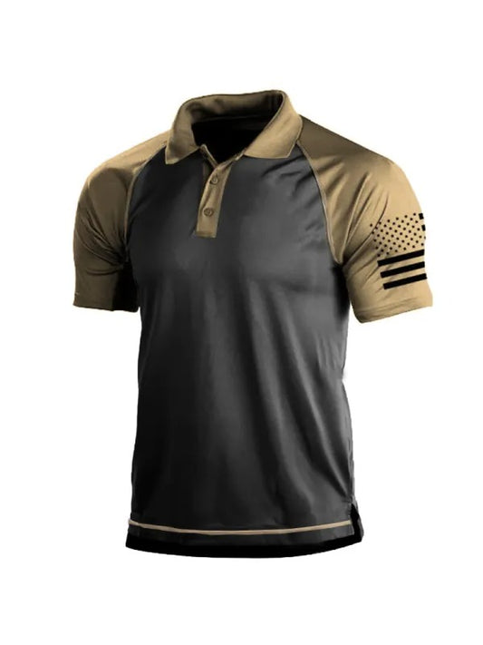 Men's Outdoor American Flag Tactical Sport PoLo Neck T-Shirt | Y1G2