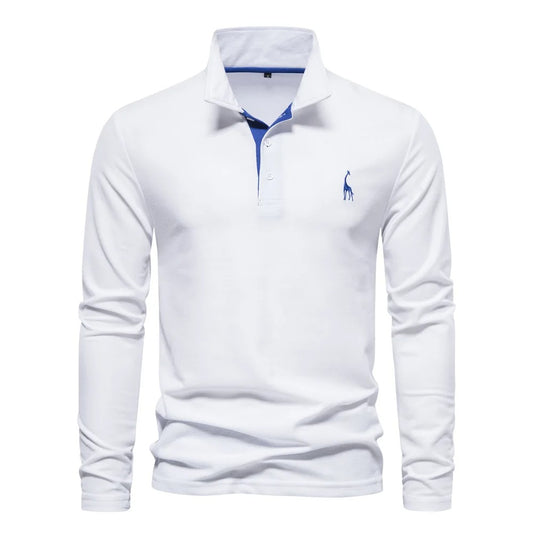 Men's Cotton Polo Shirt Fashion Casual Long Sleeve With Deer Embroidery Design T-Shirt For Men | T12