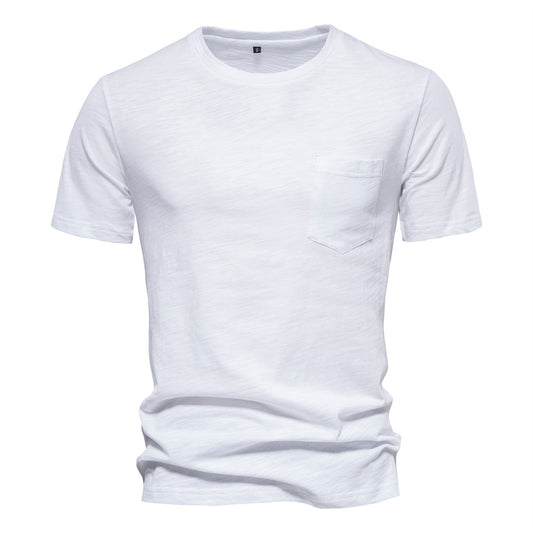 Men's Basic Chest Pocket Round Neck Short Sleeves T-Shirt | F039