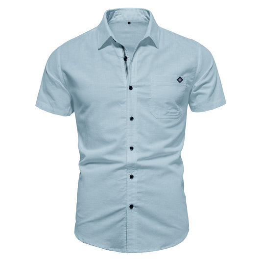 Men's Solid Color Slim Fit Embroidered Short Sleeve Casual Shirt | SH690