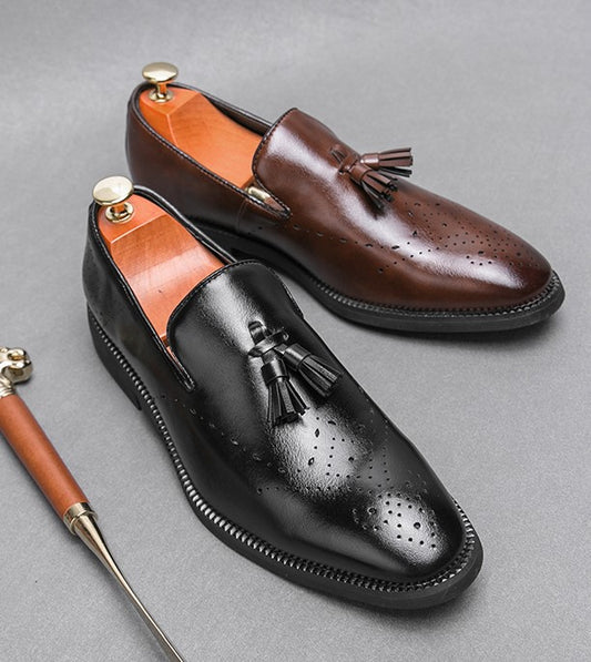Genuine Leather Loafers Shoes Outdoor Pointed Tassel Casual Carved Leather Shoes | 8739