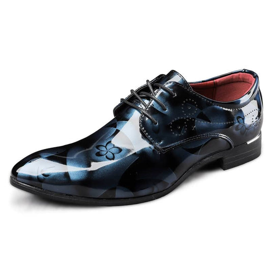 Men Floral Patent Derby Shoes Formal Business Pointed Toe Faux Leather Boots | 333