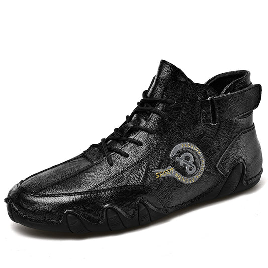Men's Leather Boots British Style High-Top Workwear Casual Shoes | 6005