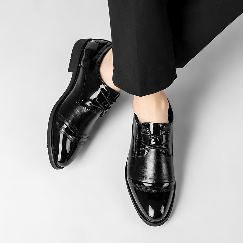 Black Glossy PU Leather Men's Casual Events Wedding Shoes Comfortable Formal Business Dress Boots | 28008