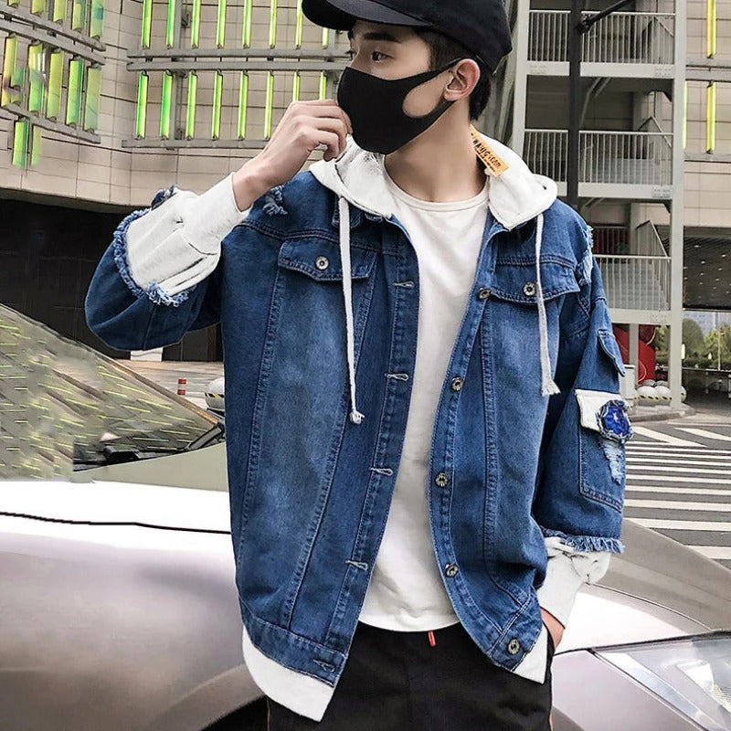 Expertly crafted, this Denim Coat offers a classic yet edgy look. Its long sleeves and hood provide protection from the elements, while the ripped design adds a touch of vintage style. Made from high-quality denim, this jacket is both comfortable and durable. Perfect for any fashion-forward man.