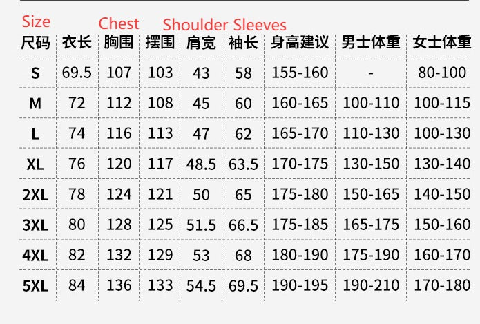 | Sizes | S, M, L, XL, 2XL, 3XL, 4XL, 5XL |