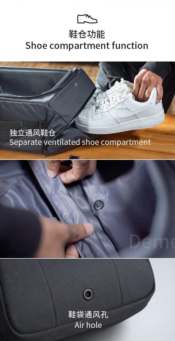 It also includes a separate shoe compartment for gym or travel use, an external USB charging port for convenience on the go, and YKK zippers for lasting durability.