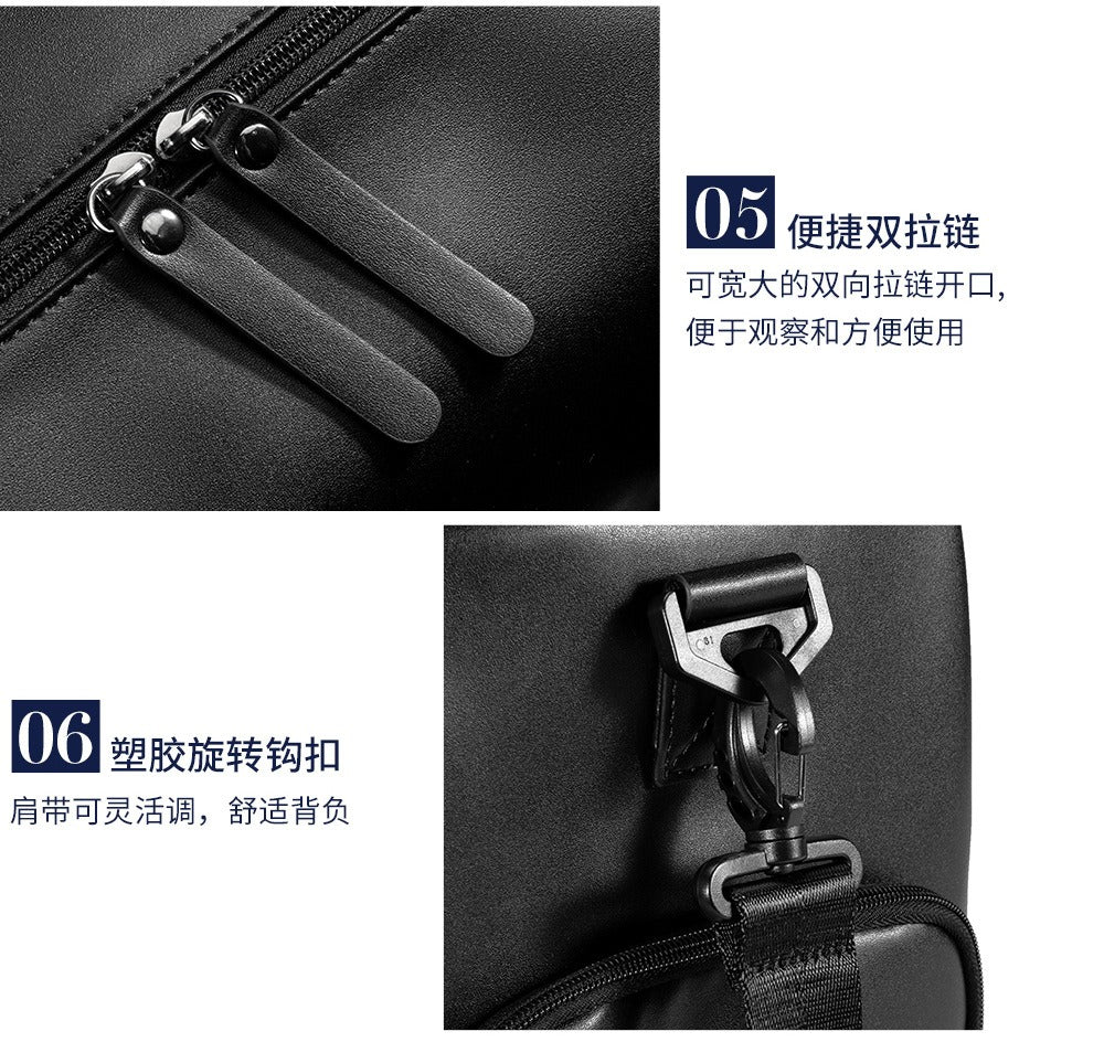 • Features: Water-resistant, Lightweight, Anti-bacterial, Anti-shock, Expandable, Anti-theft, Dry & Wet Separation, Independent Shoe Compartment, Multi-compartment, Ergonomic handles