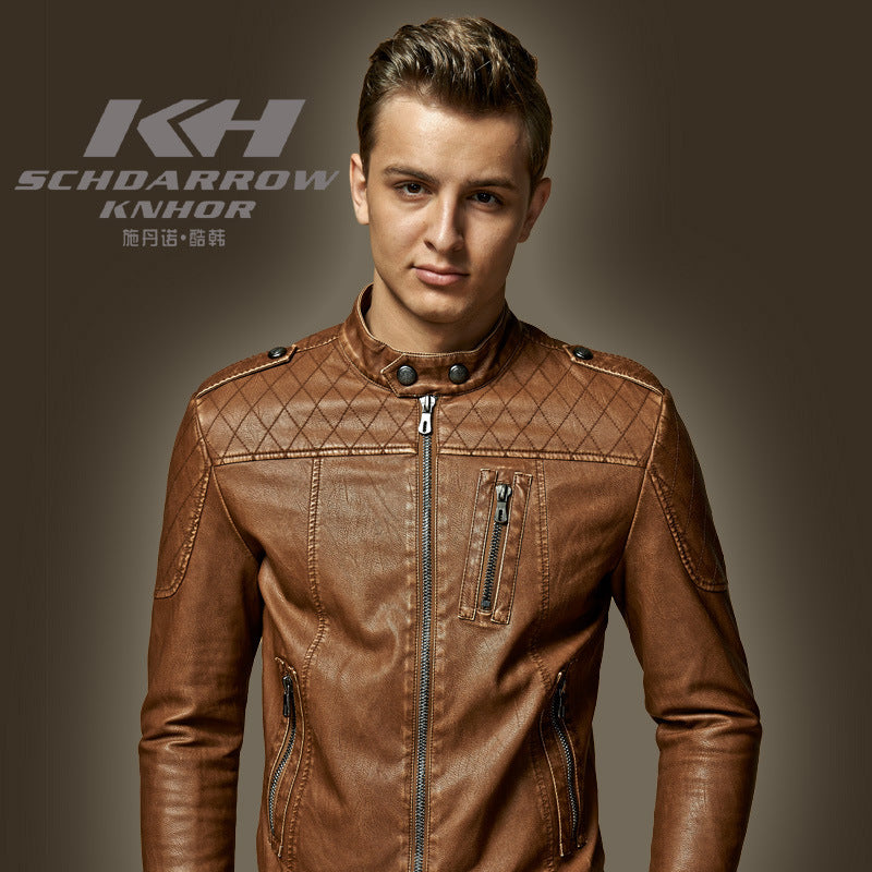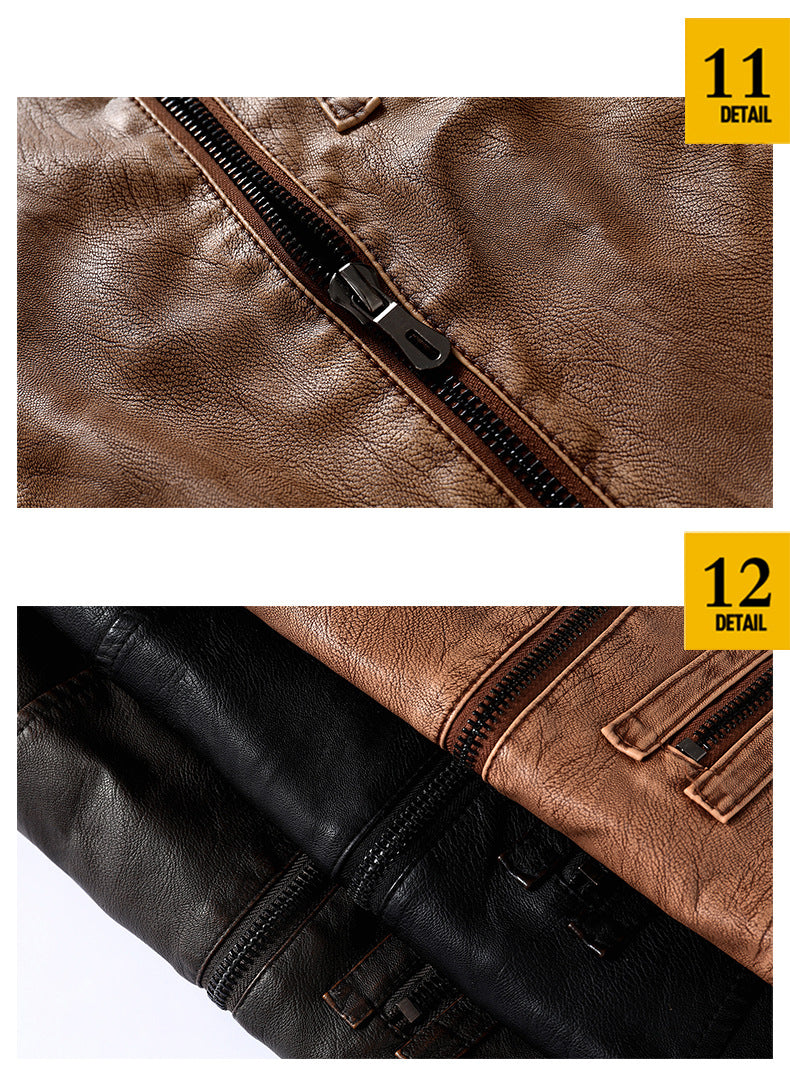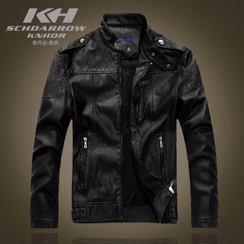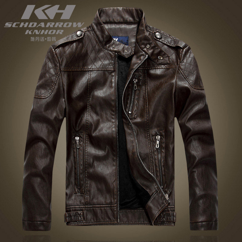 Leather Jacket Men's Standing Collar Washed PU Leather Jacket Nostalgia | 8899
