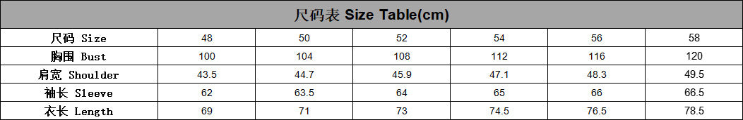 Sizes | 48,50,52,54,56,58 |