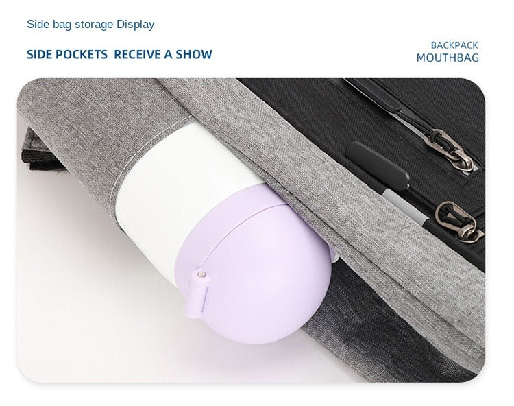 This high-quality polyester laptop backpack is perfect for students or professionals on-the-go. Its waterproof design ensures your belongings stay dry in any weather, while the spacious rucksack provides plenty of room for all your essentials. Stay organized and stylish with this versatile and durable bag.
