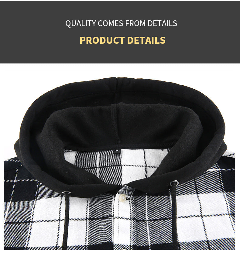 Men Premium Loose Fit Casual Flannel Long Sleeve Hooded Plaid Checkered Shirt | JM419