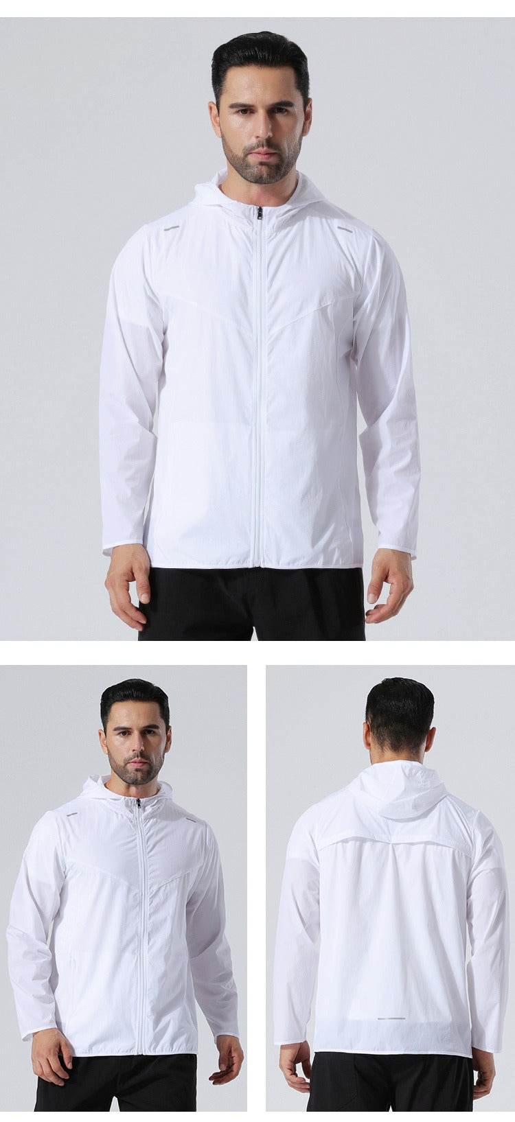 Men Premium Quality Reflective Stripe Sports Running Hooded Top Waterproof Outdoor Windrunner Gym Workout Jackets