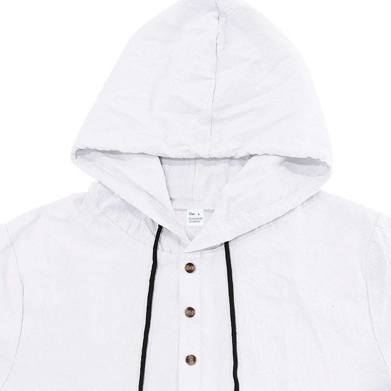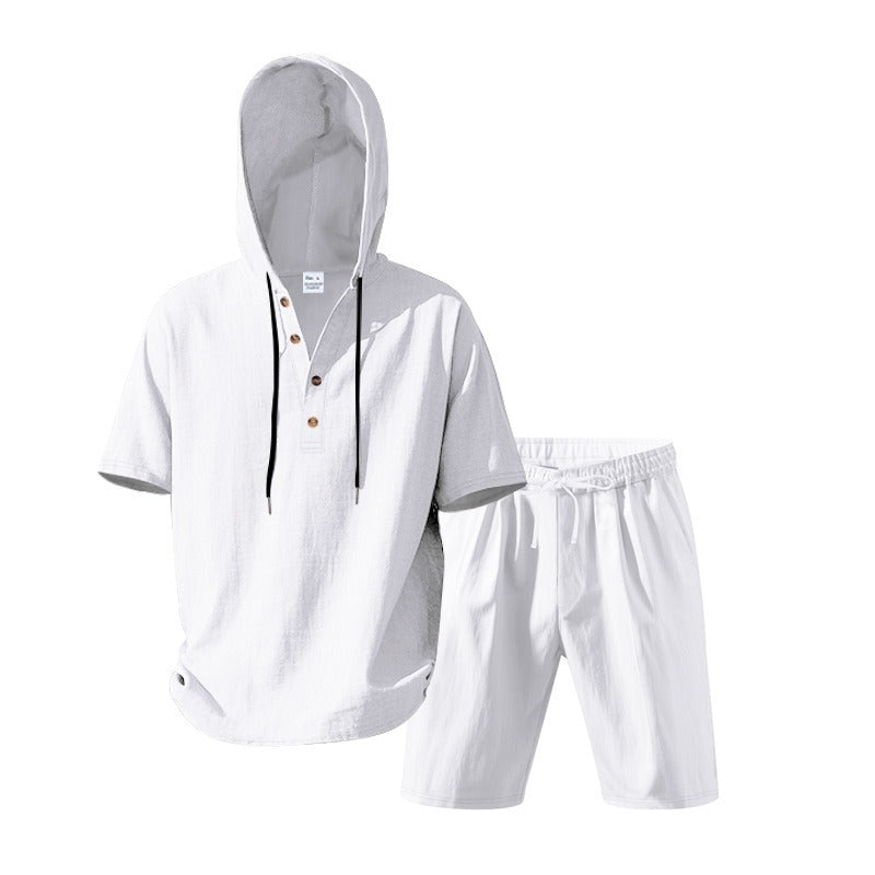 Men’s Summer Linen Hooded Shirt & Shorts Set Lightweight Casual Beachwear Set | CW15