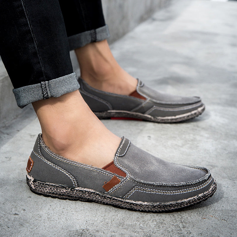 Men’s Washed Canvas Slip-On Shoes | Breathable, Anti-Slip, Classic Deck Style | 8806