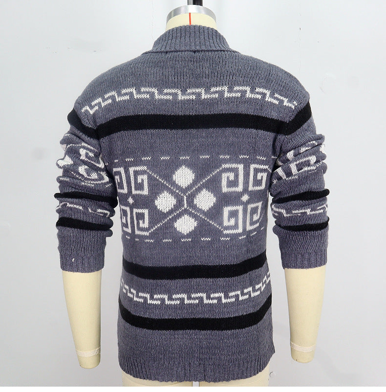 Men Stylish Slim Fit Jacquard Knit Cardigan Jacket with Long Sleeves Casual Lapel Sweater | SY0013