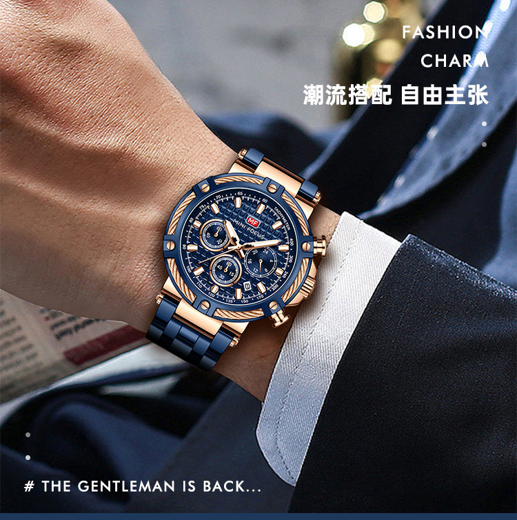 Men's Analog Stainless Steel Quartz Watch Mini Focus Chronograph Luminous Watch | MF047