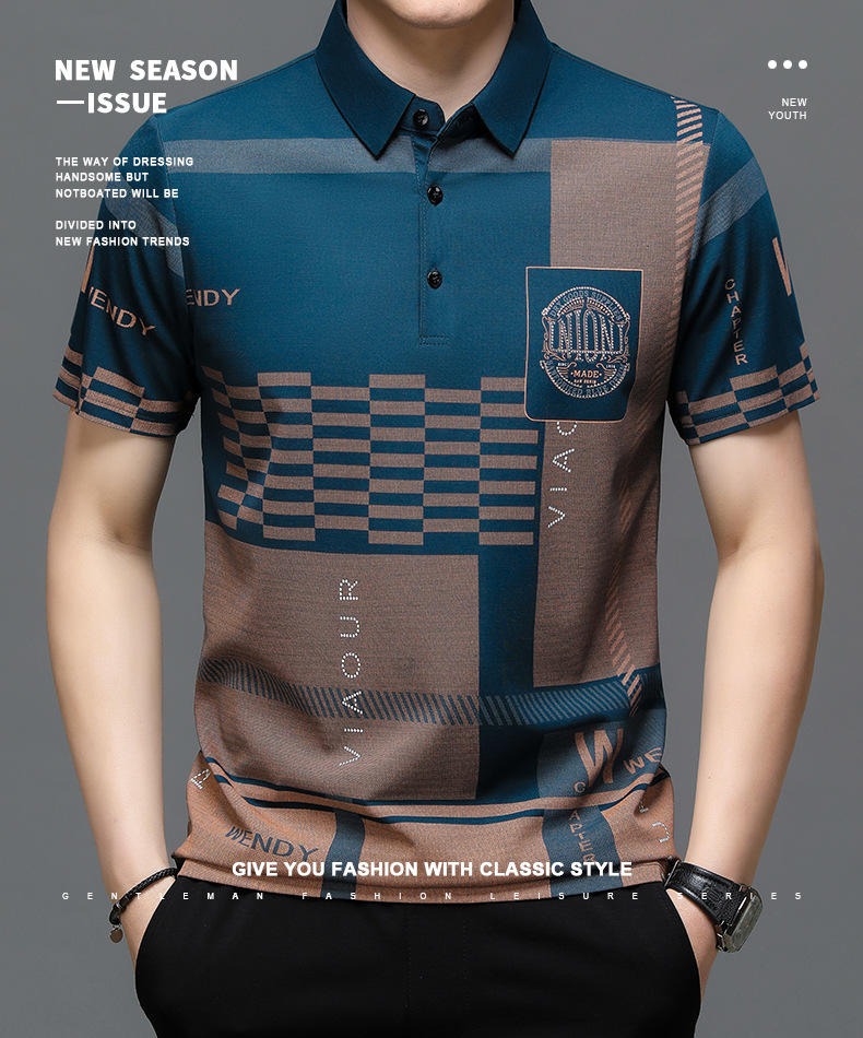 Men's Business Short Sleeve Polo Collar Cotton Shirt Solid Embroidered Top T Shirt | 104