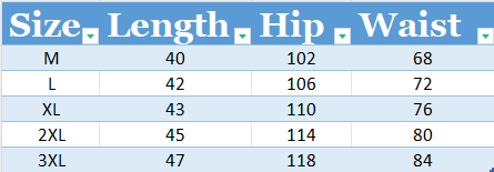 S : Waist 30” (82cm) M: Waist 32” (86cm) L: Waist 34” (90cm) XL : Waist 36” (94cm) XXL: Waist 38” (98cm) 3XL : Waist 40” (102cm) |