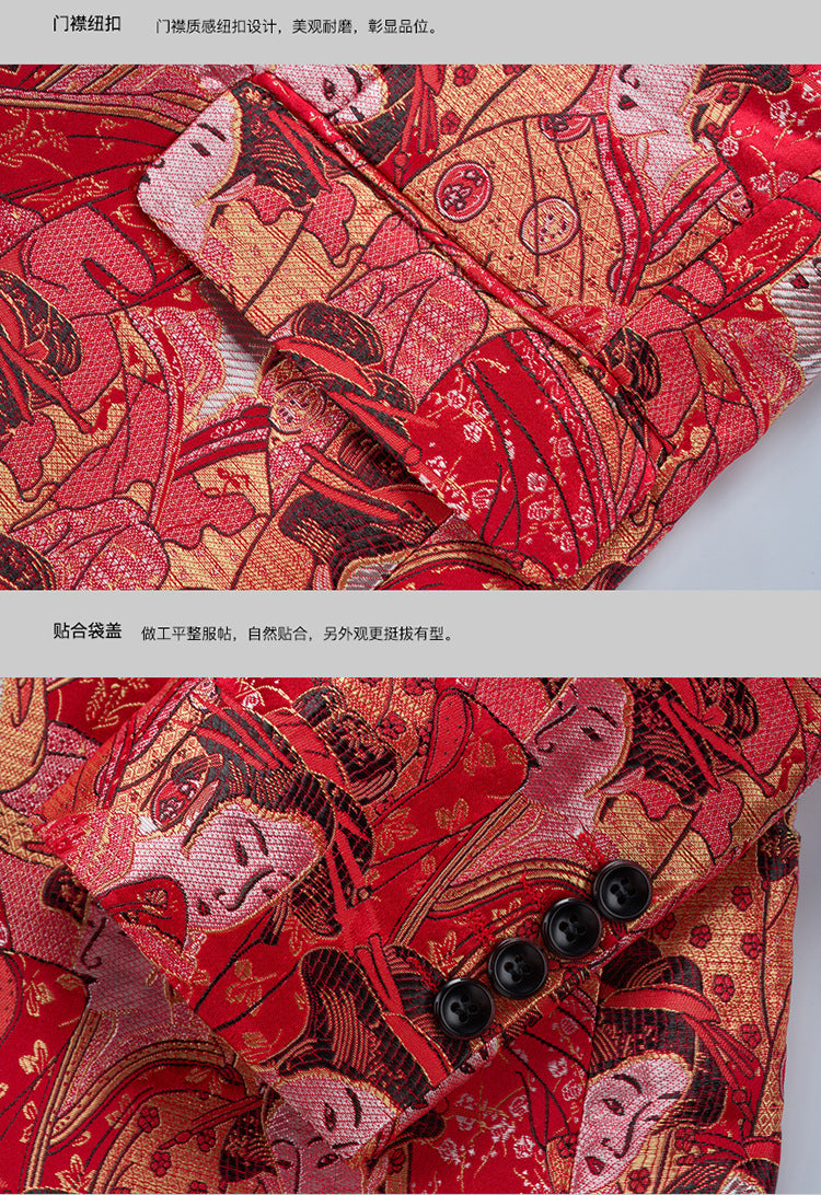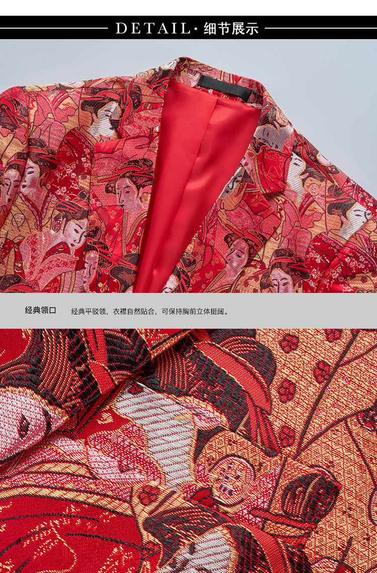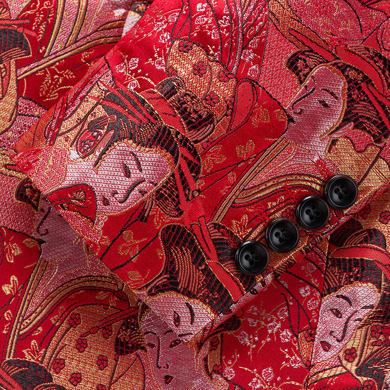 Step into the spotlight with our Men's Figure Jacquard Blazer, designed for the gentleman who commands attention. This unique single-button blazer features an exclusive figure jacquard pattern that blends sophistication with contemporary edge. Perfect for upscale nightclubs, formal banquets, and special events, this jacket combines Korean-inspired slim tailoring with premium functional fabric—keeping you stylish and comfortable all night long.