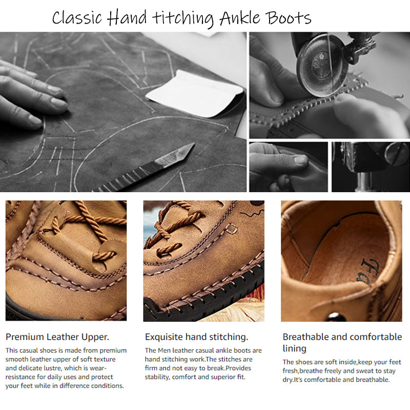 Men's Leather Casual Lace up Walking Ankle Boots Stitching Work Fashion Shoes
