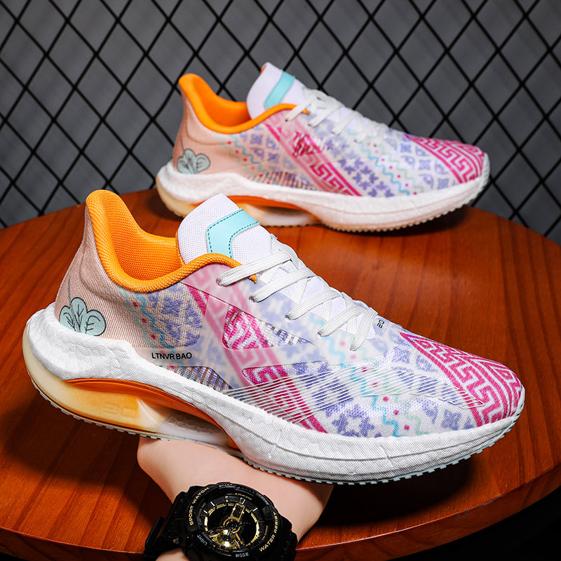 These sports shoes are ideal for outdoor running. Men's lightweight construction and cushioning support offer comfortable, responsive wear. The elastic upper ensures a secure fit with every step. Upgrade your outdoor runs now.