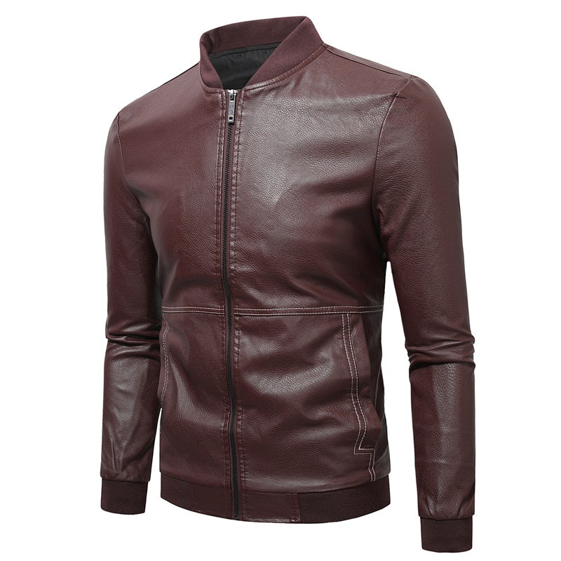 Men's Premium PU Leather Jackets Slim Fit Solid Color | JK90
