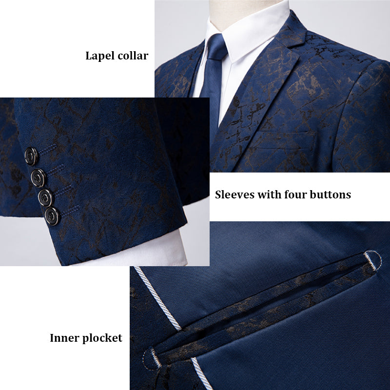 Men's Printed 3 Pieces Casual Suit Smart & Slim Fit 2 Buttons Dress | 3002-991