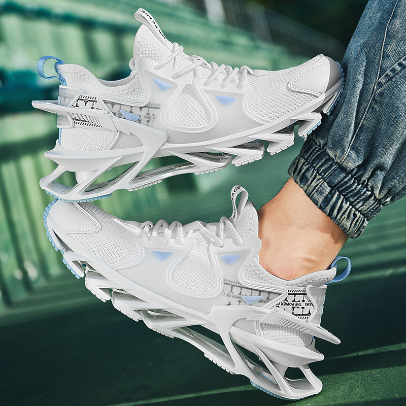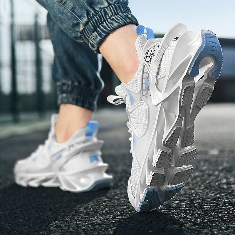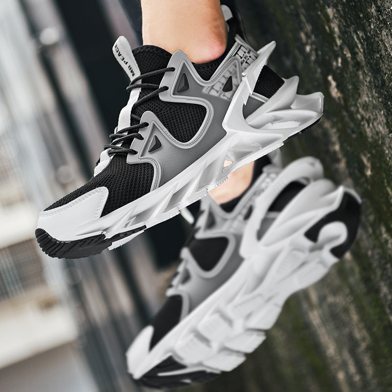 Upgrade your athletic game with our Men's Running Shoes. Featuring a breathable fly-woven design with blade-shaped soles, these sneakers will keep you stylish and comfortable whether for casual or sporty occasions. Experience improved performance and a sleek appearance with our shoes.