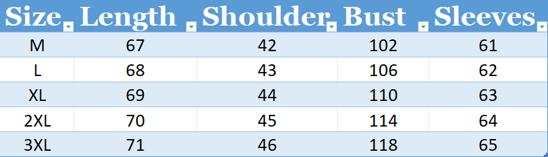 UK/EU/US Sizes: | S , M, L, XL, XXL, 3XL |