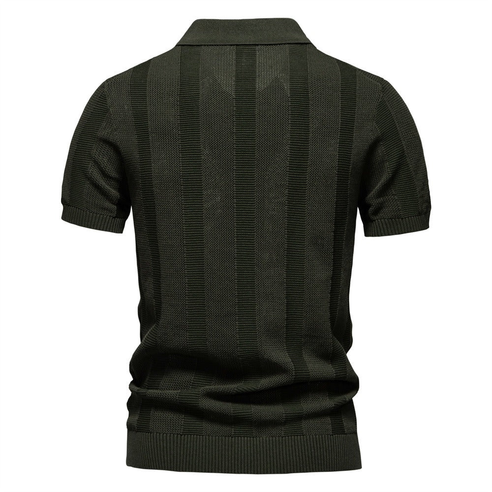The Men's Stripe Knit Polo Shirt with Mesh Panels is an essential piece for any man's summer wardrobe. Its slim-fit design and stylish mesh panels offer a modern and streetwear-inspired look. Crafted from high-quality materials, this polo shirt is both comfortable and durable. Perfect for any occasion, from casual outings to sports events.