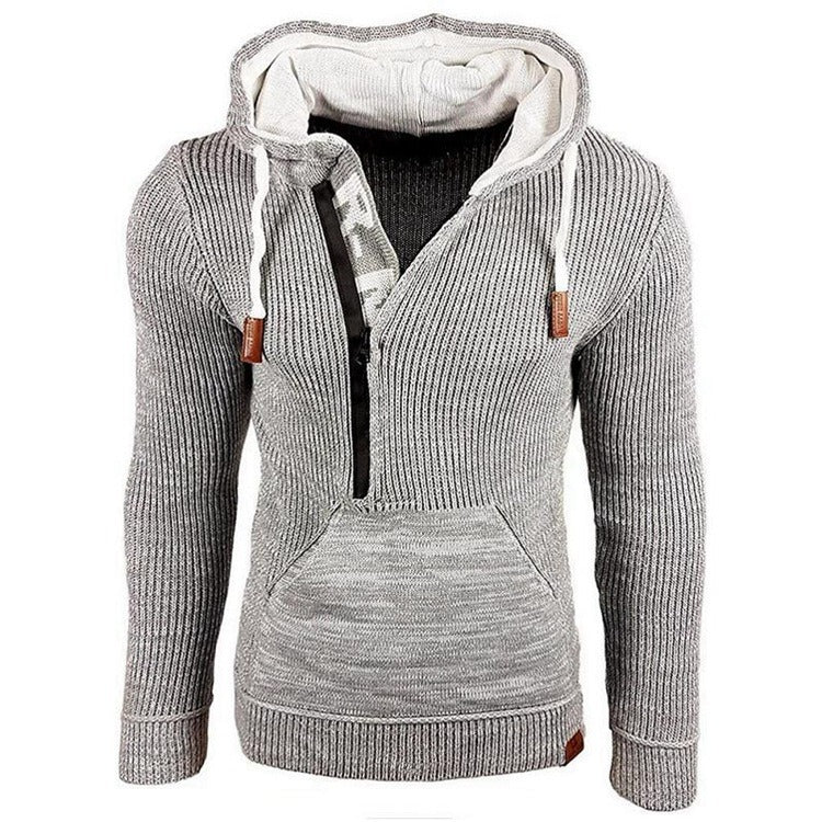 Men's Stylish Winter Warm Hooded Zip Neck Long Sleeve Sweater Jumper Sweatshirt