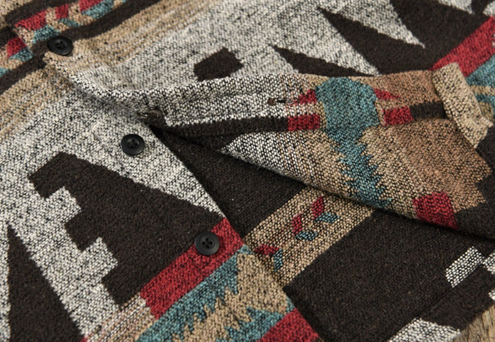 Men's Vintage Loose Fit Ethnic Aztec Geometric Print Shirt Top Pocket Woolen Shacket Plus Size Jacket | SYG-2580