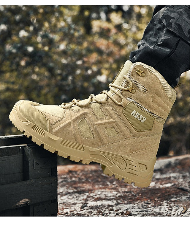 These men's waterproof leather hiking work boots provide ultimate protection and durability for any outdoor adventure. With non-slip soles, lightweight design, and breathable material, these boots are perfect for military, combat, or tactical use. Stay comfortable and secure in any terrain with these versatile desert boots.