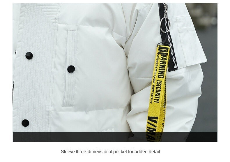 Introducing the Men's Winter Down Parka - designed for ultimate warmth and style. Made with high-quality materials and insulated with 550 fill down, this jacket will keep you cozy in the coldest of temperatures. The oversized fit and padded design provide both comfort and protection. Stay warm and fashionable this winter season.