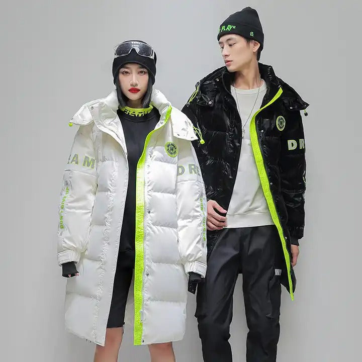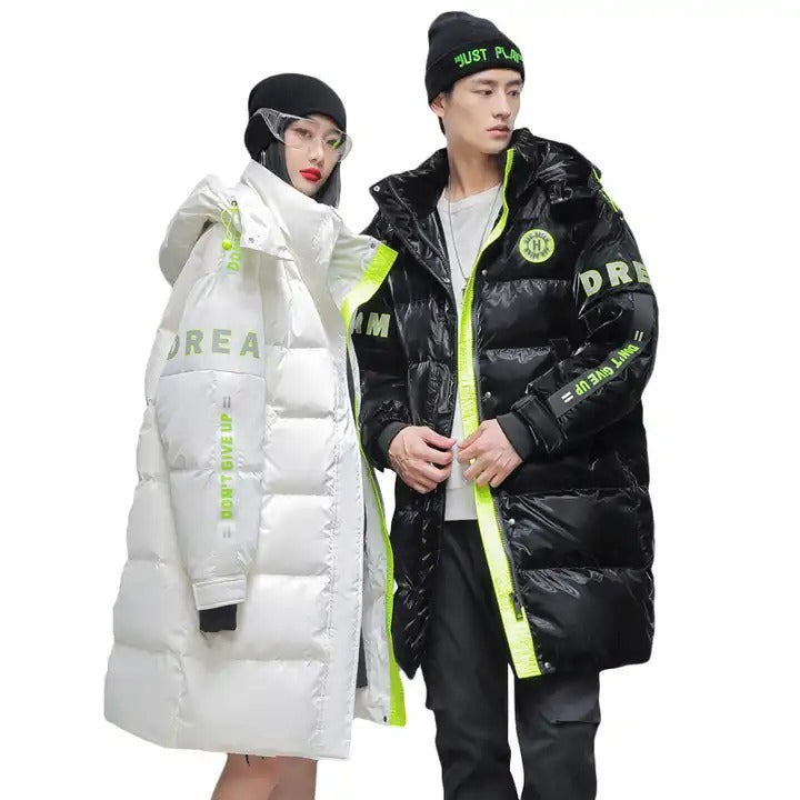 Unisex Winter Duck Down Plus Thick Jackets Zip Up Hooded Puffer Padded Long Coat