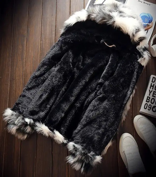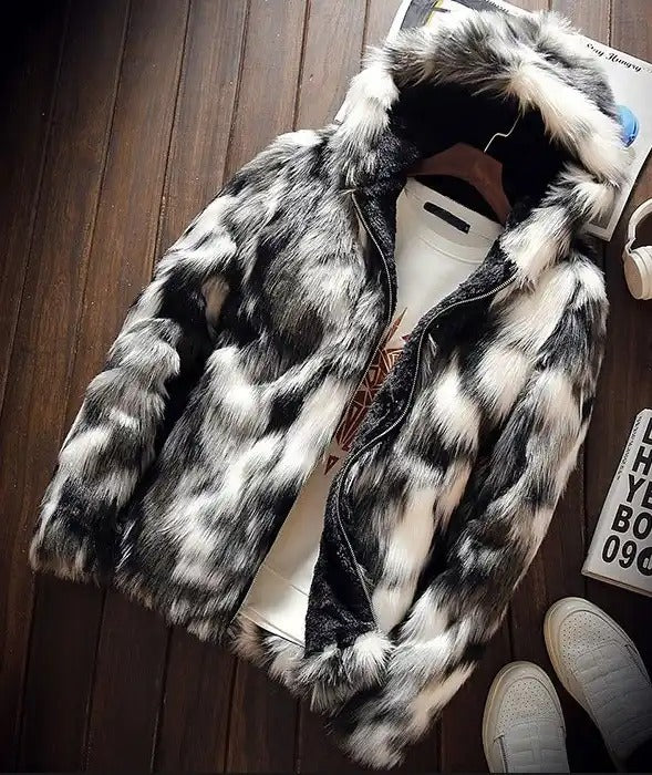 Warm Faux Fur Coat Hooded Fleece Lined Jacket Zip Parka for Men | B288-MJ046