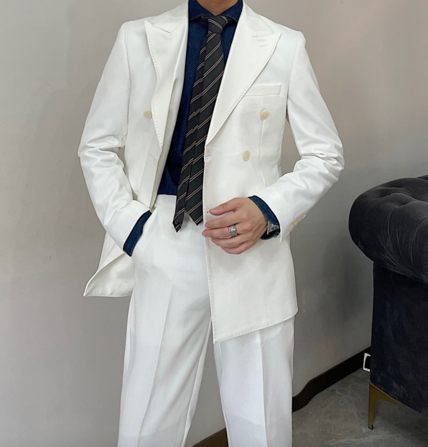 Premium 2-Piece Slim Fit Double-Breasted Suit Solid Color Peaked Lapel Dual Vents for Men | S01